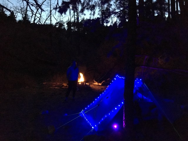Luckily there was a creek with a wonky spot big enough for the tent. The ground was uneven but I could have cared less.
