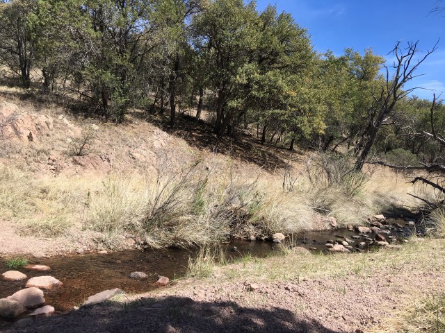 Beautiful little spot with a fast, flowing, babbling creek. We put up our tent and then noticed a small scorpion making its way to our shelter.
